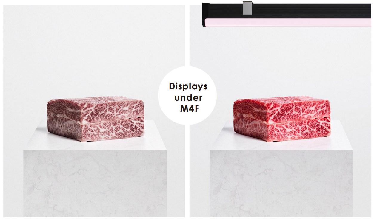 M4 tira argi ultra-mehean oinarrituta,Fanxstarargi iturriaren doikuntza egin du 4000K+6500K+Red 660nm espektro bat egiteko bereziki supermerkatuetako haragi atalerako. Haragiaren argi-espektro honen argiztapenpean, supermerkatuetan saltzen dugun haragia mamitsuagoa eta freskoagoa izan daiteke, eta, ondorioz, haragiaren salmentak areagotzen ditu.